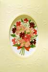 | 花束コース(中級) 押し花額(大きい額)を作るコースです。 月2回 (1回3時間) 全9回 カサブランカなどの大きなお花や、リボン、 随時開講 ラッピングペーパーの額装技術が学べます。 |